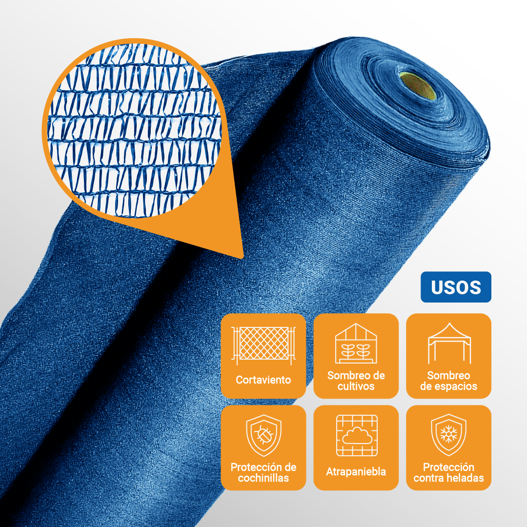La malla Raschel 35% azul de Sajotex es una tela tejida con rafias de polietileno de alta densidad, diseñada para ofrecer resistencia, durabilidad y protección en diversas aplicaciones industriales, agrícolas y de construcción.