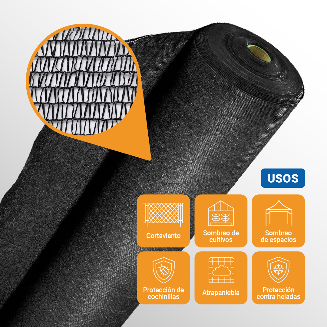 La malla Raschel 35% negro de Sajotex es una tela tejida con rafias de polietileno de alta densidad, diseñada para ofrecer resistencia, durabilidad y protección en diversas aplicaciones industriales, agrícolas y de construcción.