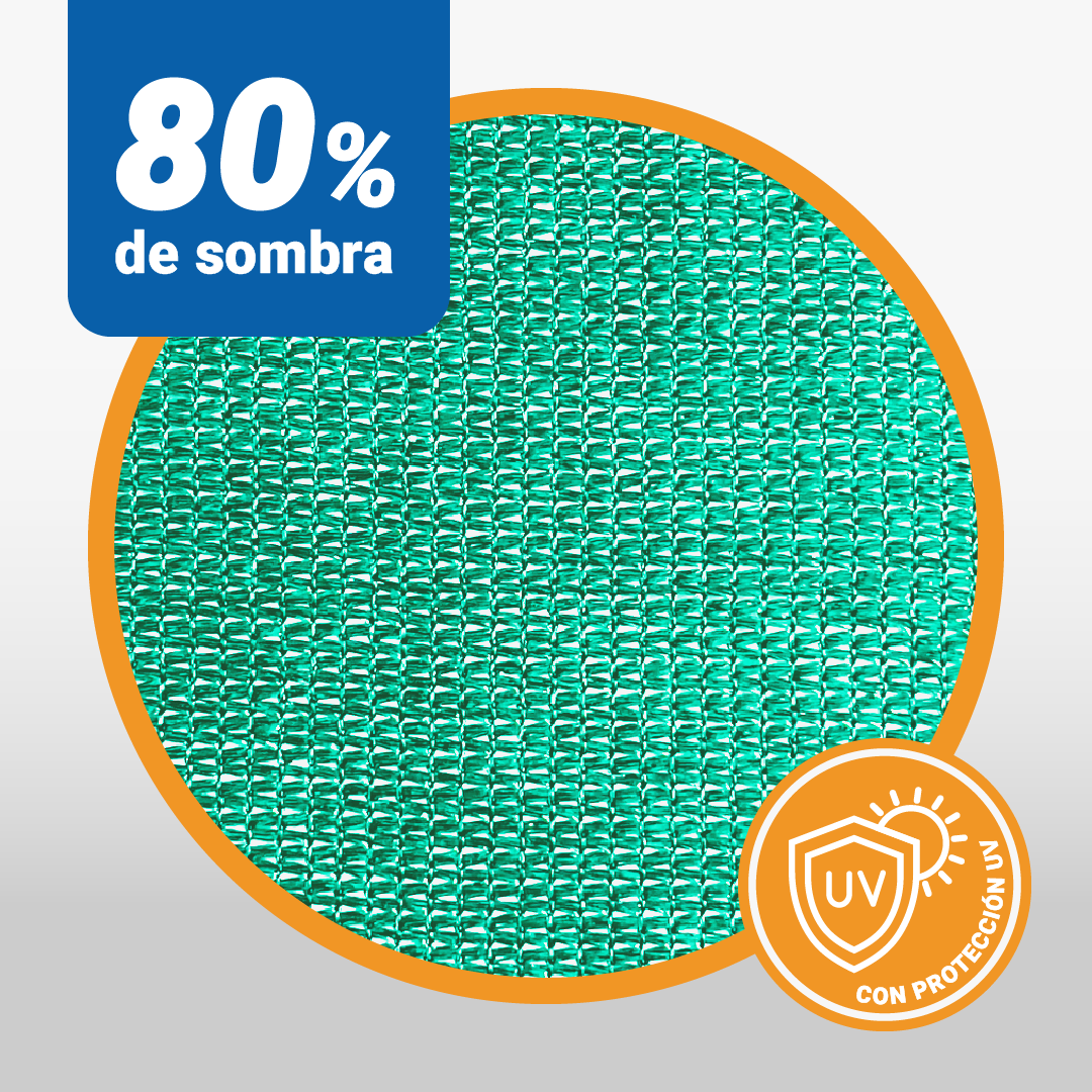 Equipada con protectores UV, esta malla reduce significativamente la radiación ultravioleta, evitando la degradación prematura del material y protegiendo eficazmente lo que cubre. Con un coeficiente de sombra del 80%, es ideal para crear ambientes frescos y protegidos, reduciendo el calor y controlando las condiciones de luz, temperatura y humedad.