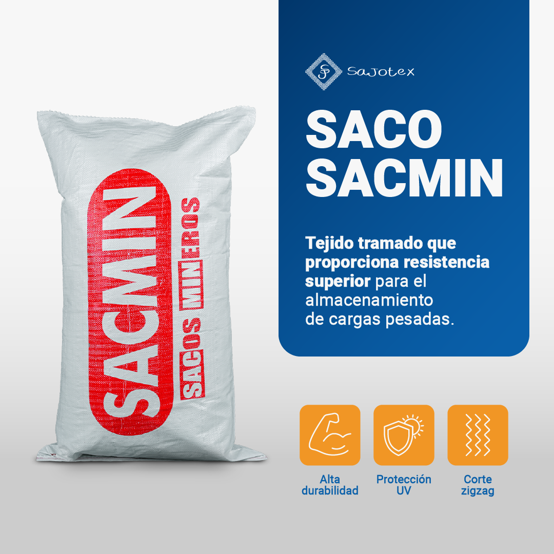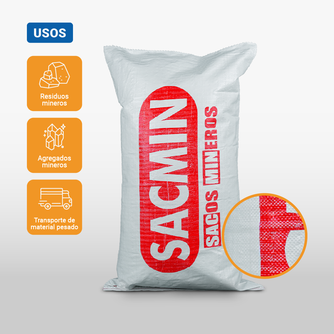 El saco tejido de polipropileno blanco uso minero, conocido como Saco Sacmin, es un envase industrial de alta resistencia diseñado para soportar cargas pesadas en entornos extremos, como minas, canteras y plantas de procesamiento.