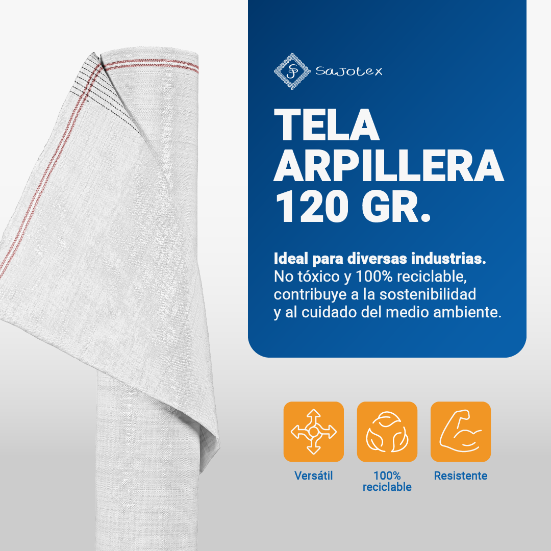 La tela arpillera blanco 120 gr de Sajotex es una tela tubular confeccionada mediante el entrelazado de cintas de diferentes gramajes, todas compuestas al 100% de material virgen. Esta estructura única ofrece resistencia superior y durabilidad prolongada, incluso en condiciones climáticas adversas.